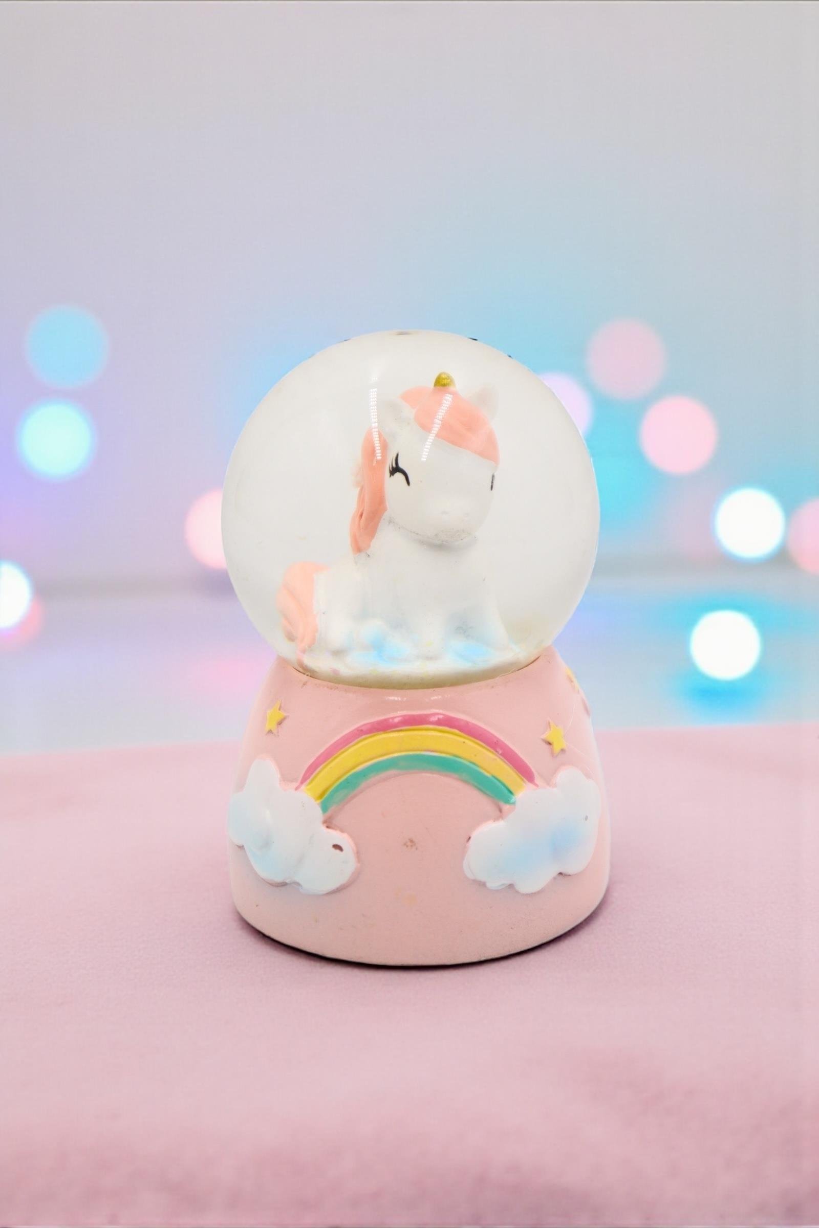 Mini Pembe Unicorn Işıklı Kar Küresi (EFBUTIK16499)